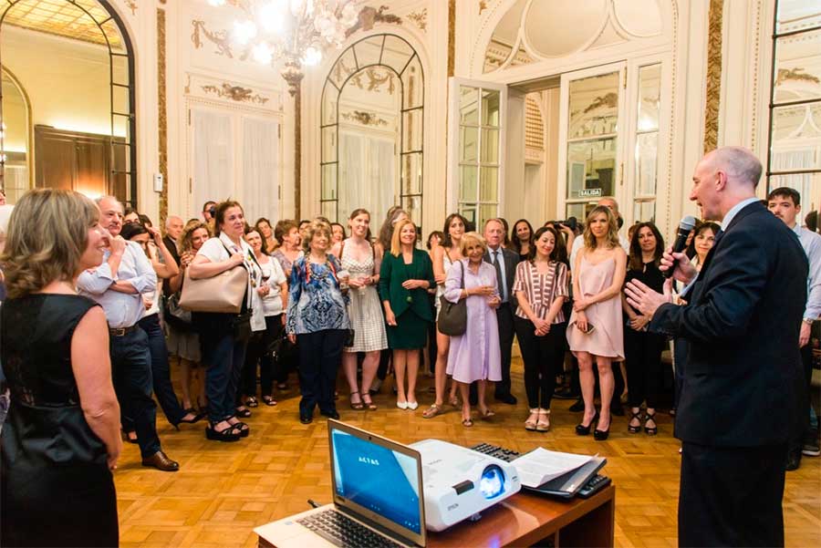 La Asociación de Intérpretes de Conferencias de Argentina (ADICA), la entidad que agrupa a los profesionales más prestigiosos del país, celebró su 40° aniversario homenajeando a sus miembros fundadores. El festejo tuvo lugar en el Centro Argentino de Ingenieros en el marco de una nueva edición del Día del Intérprete de Conferencias, y contó con la presencia de Mark Kent, embajador del Reino Unido en Argentina, entre otras personalidades.