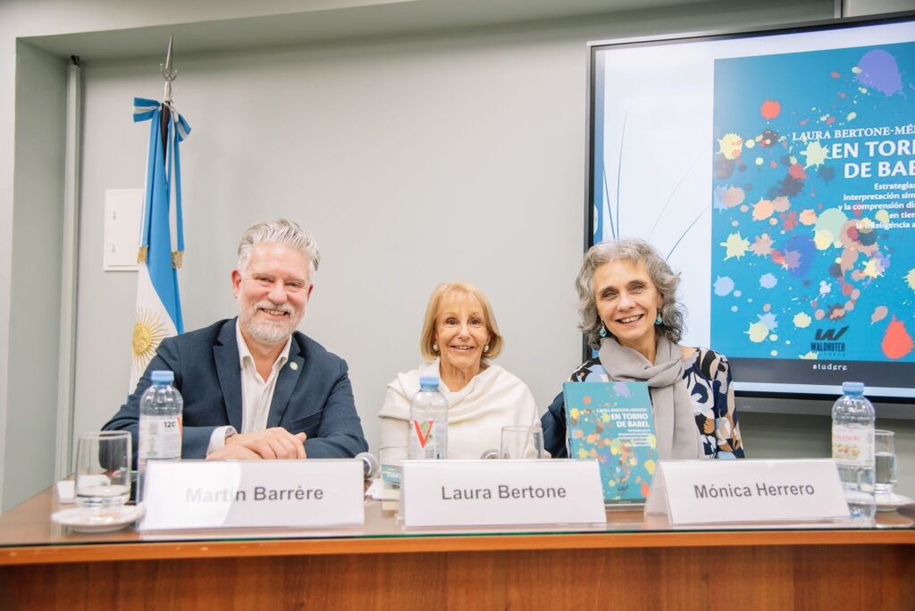 En agosto, acompañamos la presentación del libro En torno de Babel. Estrategias para la interpretación simultánea y la comprensión discursiva en tiempos de la inteligencia artificial, escrito por nuestra socia Laura Bertone-Méndez.